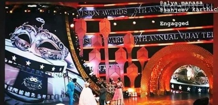 அண்மையில் இந்த தொலைக்காட்சியில் சின்னத்திரை விருது விழா நடந்தது. அதில் ரீல் ஜோடியாக இருந்து ரியல் காதலர்களாக மாறிய சஞ்சீவ்- ஆல்யா மானசாவிற்கு நிச்சயதார்த்தம் நடந்துள்ளது.